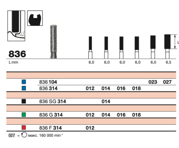 Бор серии ECO E 836 SC 314.014 используется для точной формовки зубных тканей. Он применяется в стоматологии для подготовки полостей и различных поверхностей под реставрационное восстановление или коронкование, обеспечивая комфортную и безопасную работу.