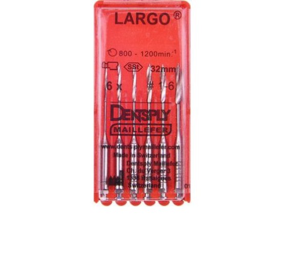 Ларго №1-6 – профессиональный набор из шести инструментов разного размера, изготовленных из высококачественной медицинской стали. Отличается повышенной износостойкостью и оптимальной гибкостью для безопасного прохождения каналов. Специальная рабочая часть обеспечивает эффективное удаление дентинных опилок и оптимальное формирование профиля.